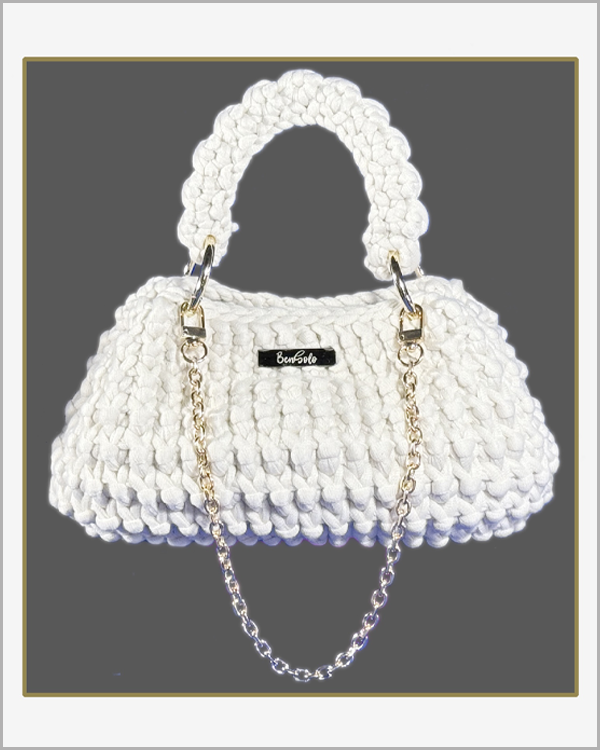 The Lula Mae features a sleek double-stack design with chain straps, combining elegance and functionality in a compact form. Perfect for carrying essentials with style.